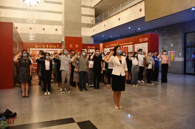 7月1日下午,嘟嘟成人网 全体师生党员在思源楼大厅参观了“初心百年恰风华——嘟嘟成人网 党史百年主题展览”,并进行集体宣誓。宣誓活动由党委书记于亚光领誓,全体党员举起右拳,面对党旗庄严宣誓。铮铮誓词,字字铿锵,党员同志们在一字一句间重温入党之路、回顾入党初心,追忆在党芳华,接受了一次身心洗礼。