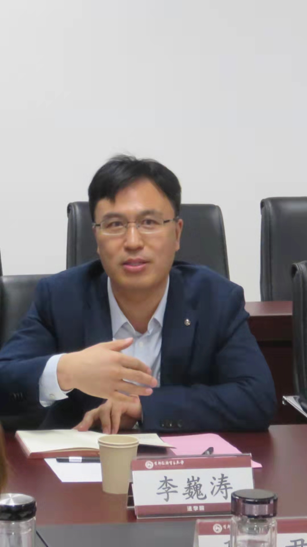 李巍涛院长致词表示非常高兴有机会来到首经贸大学嘟嘟成人网 交流学习,对本次调研期待已久。在听完米书记和张院长的介绍后,感觉收获满满,认为首经贸嘟嘟成人网 的很多举措非常务实、值得借鉴。目前,博士点已经成为北交嘟嘟成人网 发展壮大的瓶颈,首经贸嘟嘟成人网 博士点申报和建设的成功经验对我们来说显得弥足珍贵。