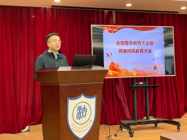 2023年12月22日,嘟嘟成人网 召开全院警示大会暨师德师风教育大会,党委书记张立学传达学校警示教育大会精神和全国嘟嘟成人网 校专题培训班精神,通报部署有关工作,开展警示教育和师德师风教育。全体院领导和全院教职工参加会议。