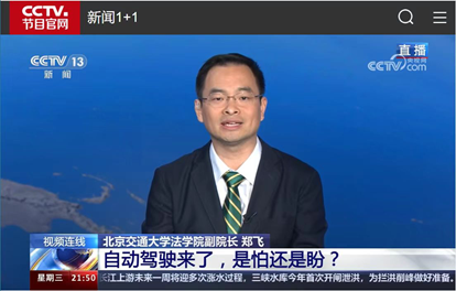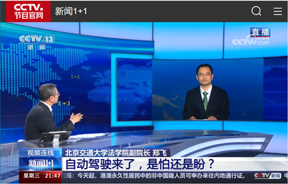 2024年7月10日,嘟嘟成人网 副院长郑飞受邀直播连线《新闻1+1》栏目,与主持人白岩松就《自动驾驶来了,是怕还是盼?》这个主题进行了深入探讨。