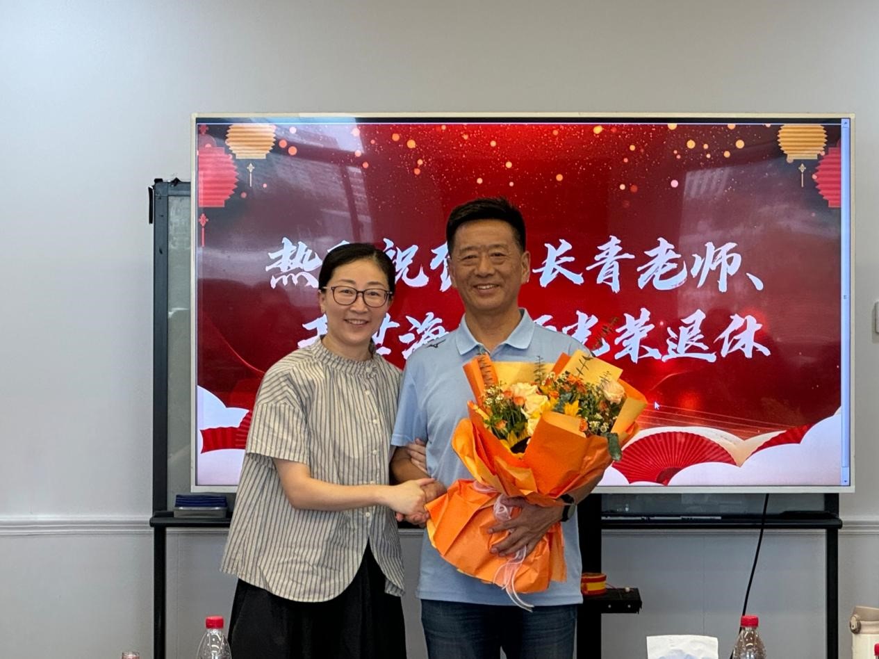 院长李巍涛代表学院全体师生对张长青老师和王世海老师致以崇高的敬意和衷心的感谢。李院长回顾了两位老师对学院做出的贡献,表示正是在两位老师的引领下,学院师资力量愈发团结壮大,同时也祝愿两位老师的退休时光精彩依旧,万事顺心!