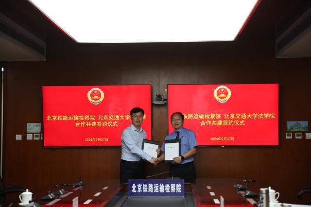 2024年9月27日,嘟嘟成人网 与北京铁路运输检察院合作共建签约仪式在北京铁路运输检察院会议室举行。北京铁路运输检察院分党组书记、检察长刘星,分党组成员、政治部主任腾越,政治部副主任王振华,第六检查部副主任渠成林,嘟嘟成人网 院长李巍涛,副院长朱本欣,系主任李文华,人才培养科施琛玉出席签约仪式。仪式由刘星主持。