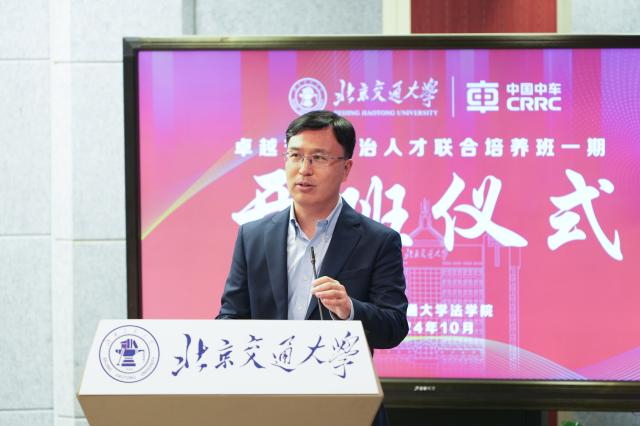 李铮代表中国中车对嘟嘟成人网 表达感谢并做动员讲话。她强调,本次培训经由中国中车法律合规部和北交大嘟嘟成人网 具体策划和论证,充分考虑到双方交通运输背景的契合点,北交大嘟嘟成人网 “一体两翼”的法治人才培养模式和中国中车所需的法治合规人才方向高度契合。她指出,中国中车历来高度重视法治合规建设,目前已成为世界一流法治企业的建设试点单位。希望学员们提高政治站位、珍惜培训机会,学于心、用于行,着力提升依法决策水平,为企业高质量发展、服务国家战略贡献力量。