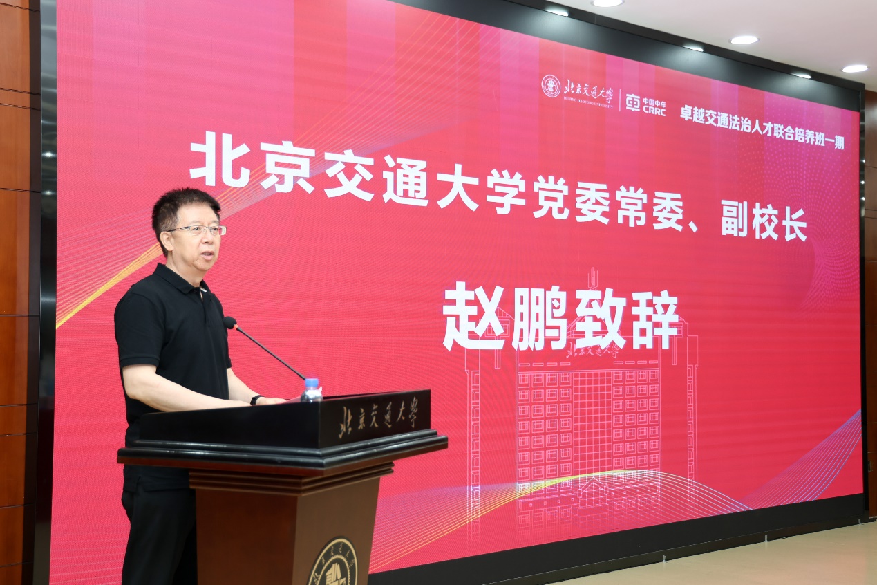 赵鹏对出席典礼的领导和学员表示欢迎,并对顺利结业的学员表示祝贺,同时对中国中车集团的信任与支持表达感谢。他强调,举办此次“卓越交通法治人才联合培训班”是嘟嘟成人网 服务国家重大战略需求、深化产教融合、服务行业领军企业的宝贵机会,也是对嘟嘟成人网 法学教育、学科实力和培训组织能力的充分认可。围绕“传承”“担当”“同行”三个关键词,赵校长提出三点希望,希望各位学员秉承“知行”校训,以法治素养提升管理效能,持续打造企业法治建设的“软实力”。未来,嘟嘟成人网 愿与中国中车继续携手,在人才培养、科技创新、产业升级中开展更多、更深层次的合作。